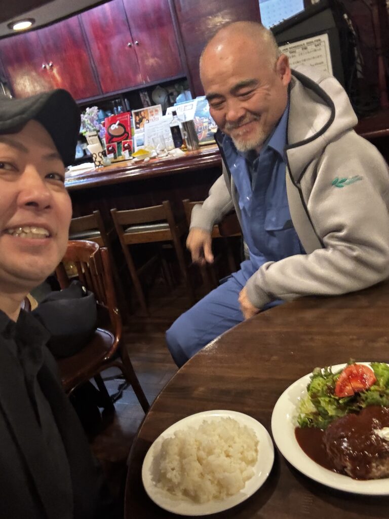 手ごねハンバーグが人気の木造りレストランで、